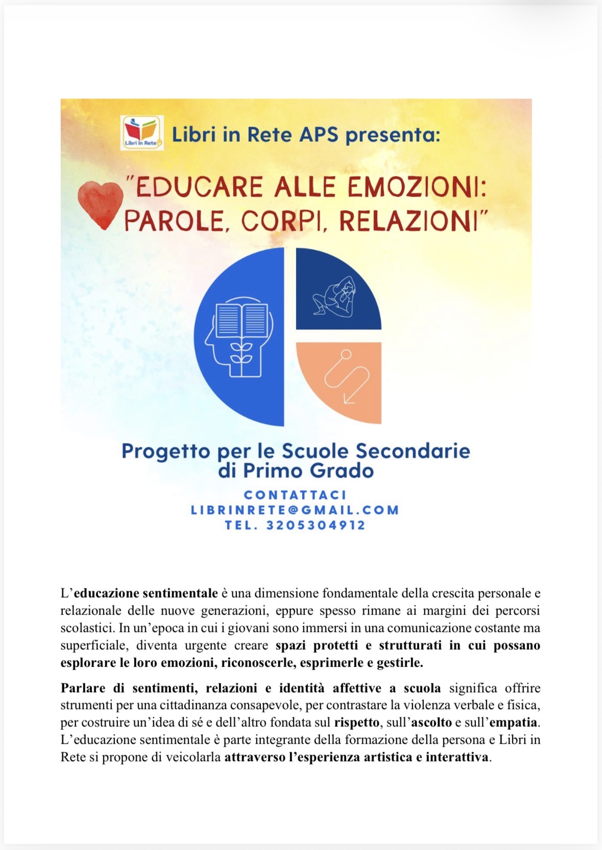 Gli interventi sono pensati per accompagnare studenti, docenti e famiglie in un percorso di crescita che metta al centro l'educazione emotiva, il dialogo e il rispetto reciproco.